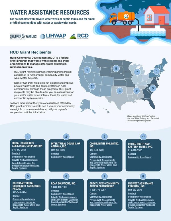 Water assistance resources for households with private water wells or septic tanks and for small or tribal communities.